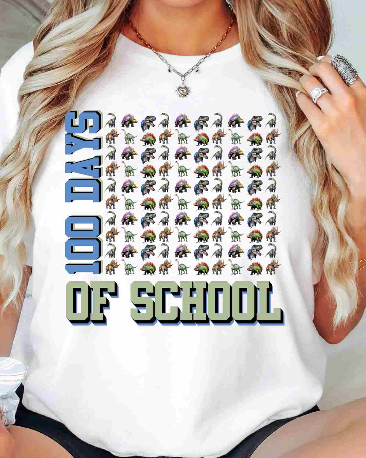 Whether you're looking to show off your love for your favorite team or add a little flair to your clothing, our 100 DAYS of School Dinosaurs DTF Transfer is the perfect choice. Our transfer is easy to apply, making it a great choice for anyone looking to create custom t-shirts or other items. Simply use a heat press to apply the transfer to your chosen fabric.