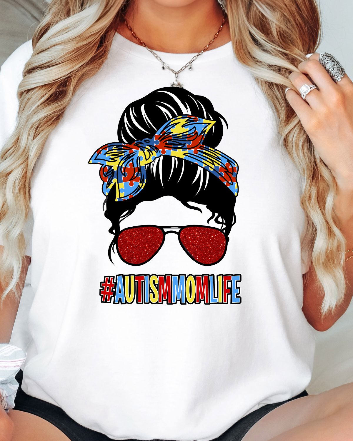 Introducing our new #autismmomlife messy bun heat transfer, a powerful and meaningful way to show your support for those on the autism spectrum. Made with high-quality materials and designed with love, this t shirt transfer features a unique and eye-catching design that is sure to turn heads.