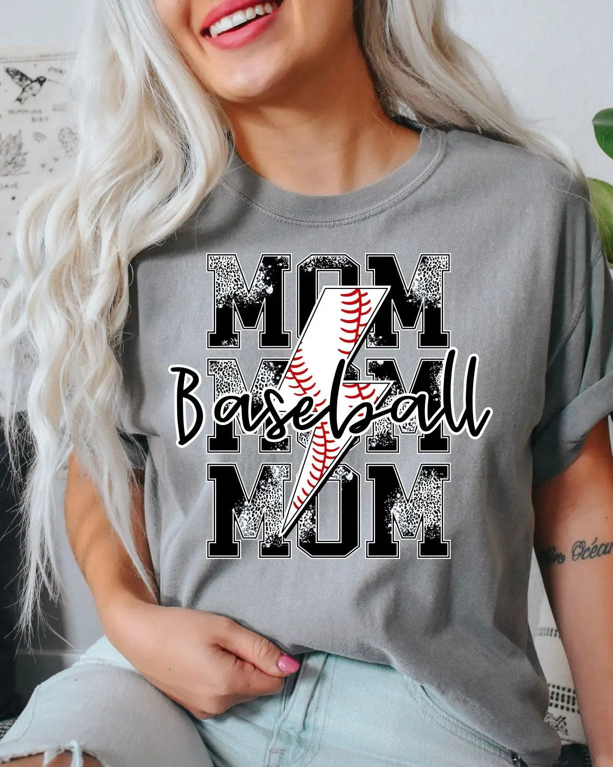 Baseball Mom Lightning Bolt DTF Transfer
