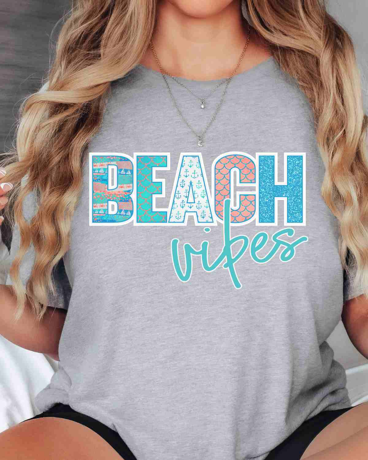 Whether you're looking to show off your love for your favorite team or add a little flair to your clothing, our BEACH VIBES DTF Transfer is the perfect choice. Our transfer is easy to apply, making it a great choice for anyone looking to create custom t-shirts or other items. Simply use a heat press to apply the transfer to your chosen fabric.