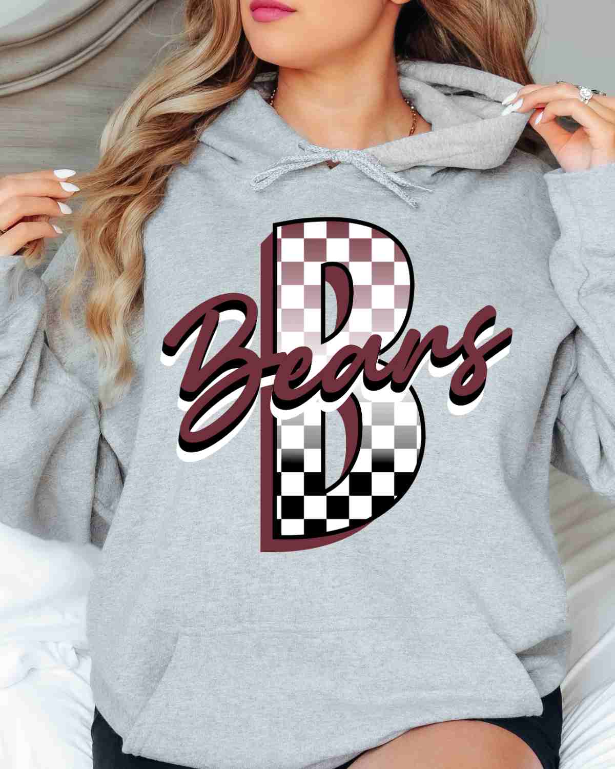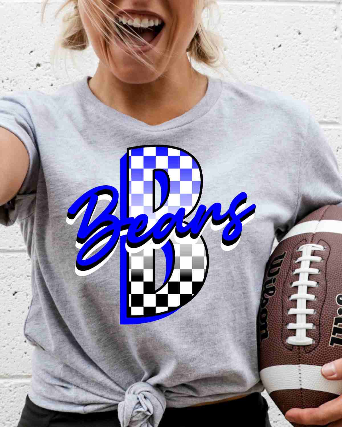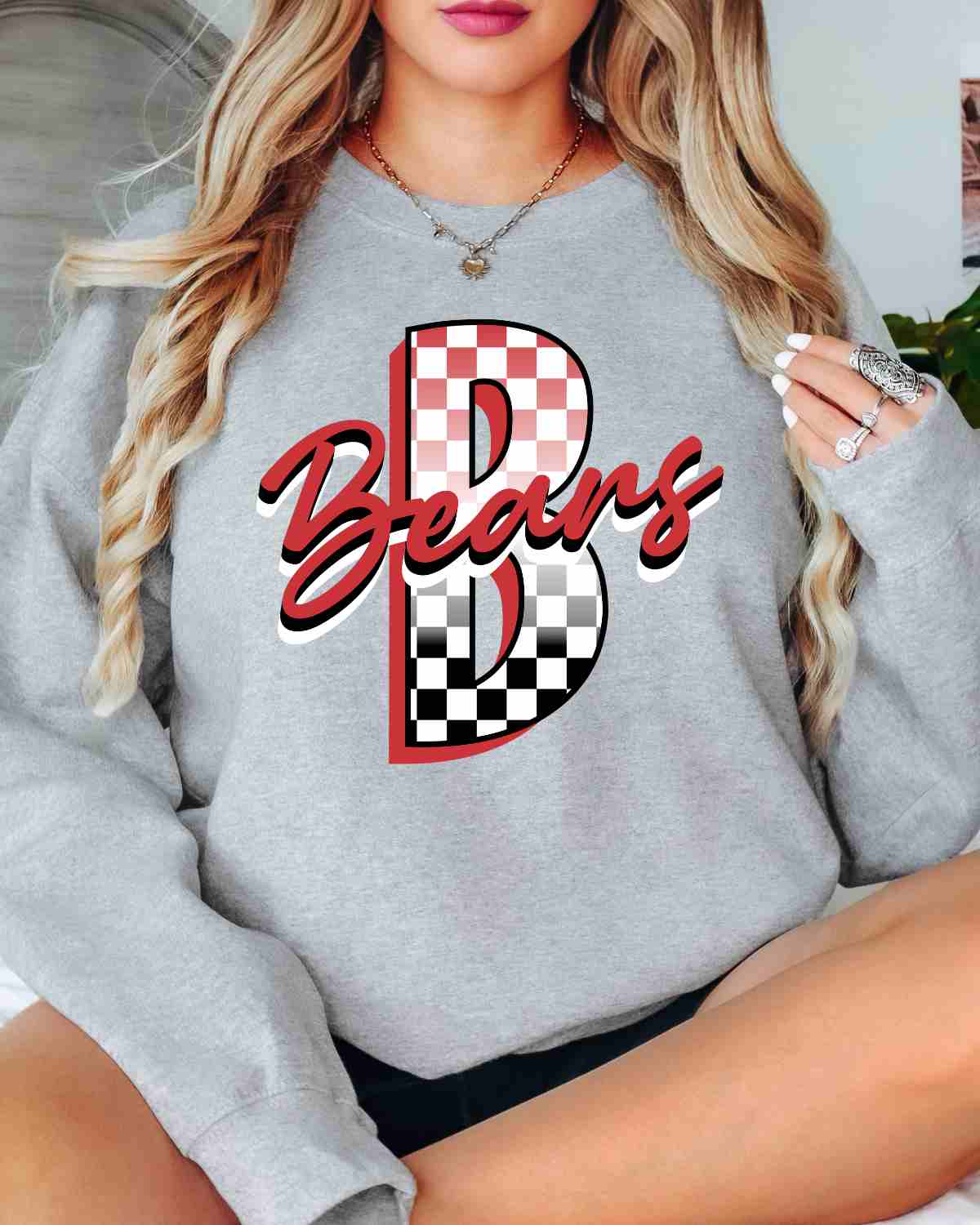 Are you looking for a custom heat transfer design for your apparel? Look no further than Rustic Grace Heat Transfer Company! Our Bears Checkered Letter Transfer is perfect for adding school spirit, sports, or mascot to t-shirts. It can easily be applied to any colored fabric with our easy application dtf transfer. It has a high-quality color vibrancy and can be applied with a heat press.