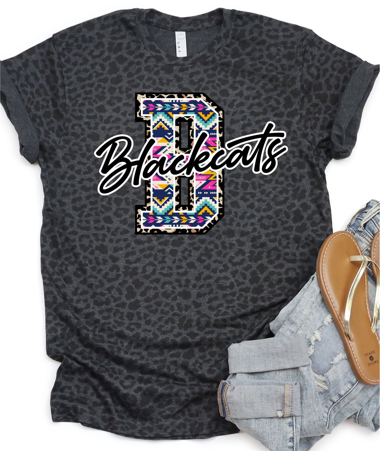 Bring Your T-Shirt Game to the Next Level with Our Blackcats Aztec Letter DTF Transfer! Order yours today!