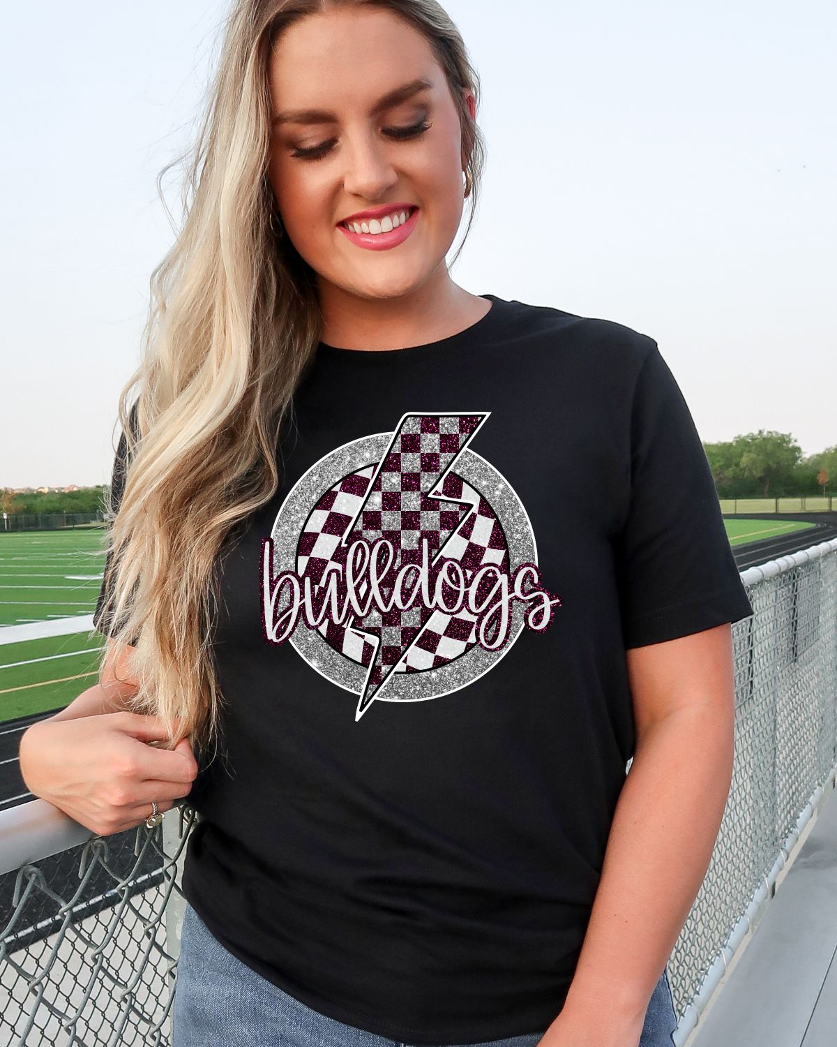 Bulldogs Bolt Checkered Circle DTF Transfer