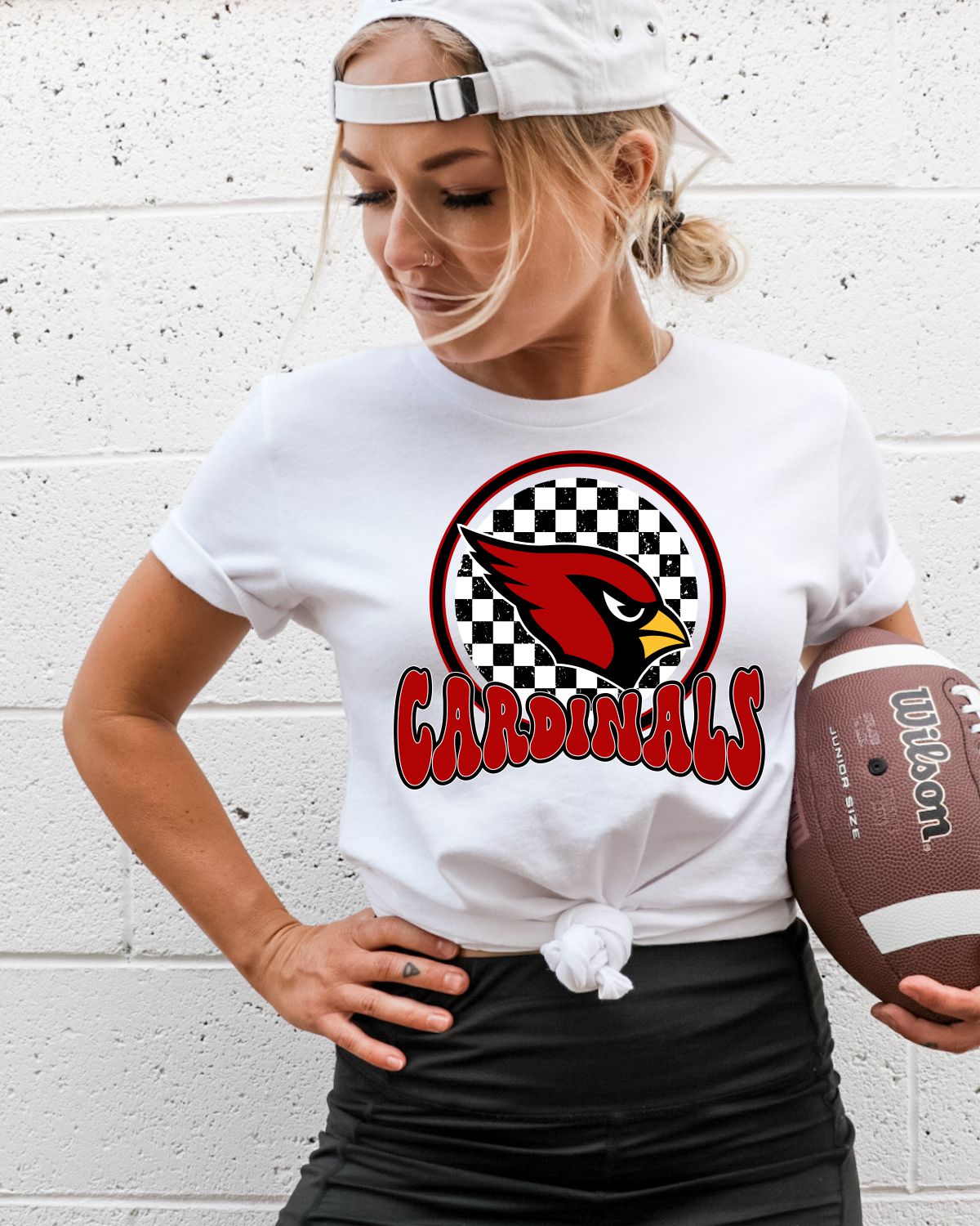 Looking for a way to spice up your wardrobe with a unique and trendy look? Look no further than Rustic Grace Heat Transfer Company's Cardinals Checkered Circle DTF Transfer! Our high-quality heat transfer designs are the perfect way to add some fun and flair to your t-shirts, jackets, hats, and more.