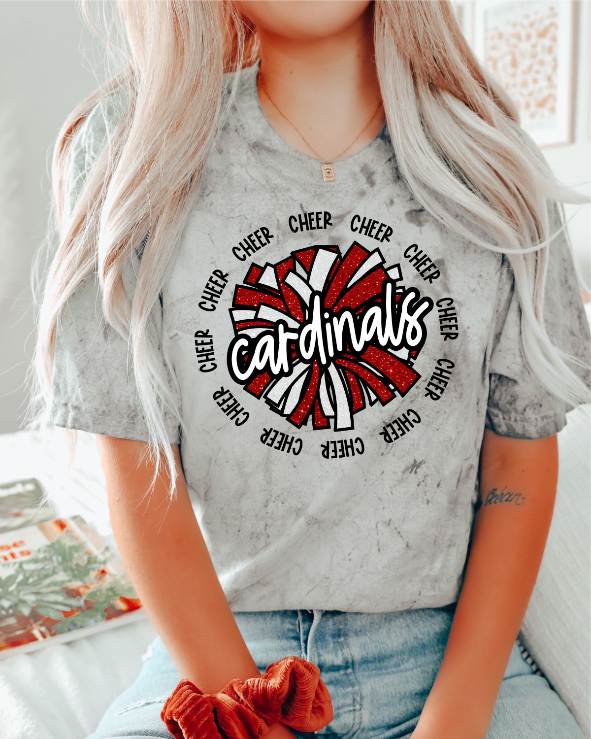 Looking for a bold and eye-catching design for your t-shirt or team uniforms? Look no further than the Cardinals Cheer DTF Transfer from Rustic Grace Heat Transfer Company!