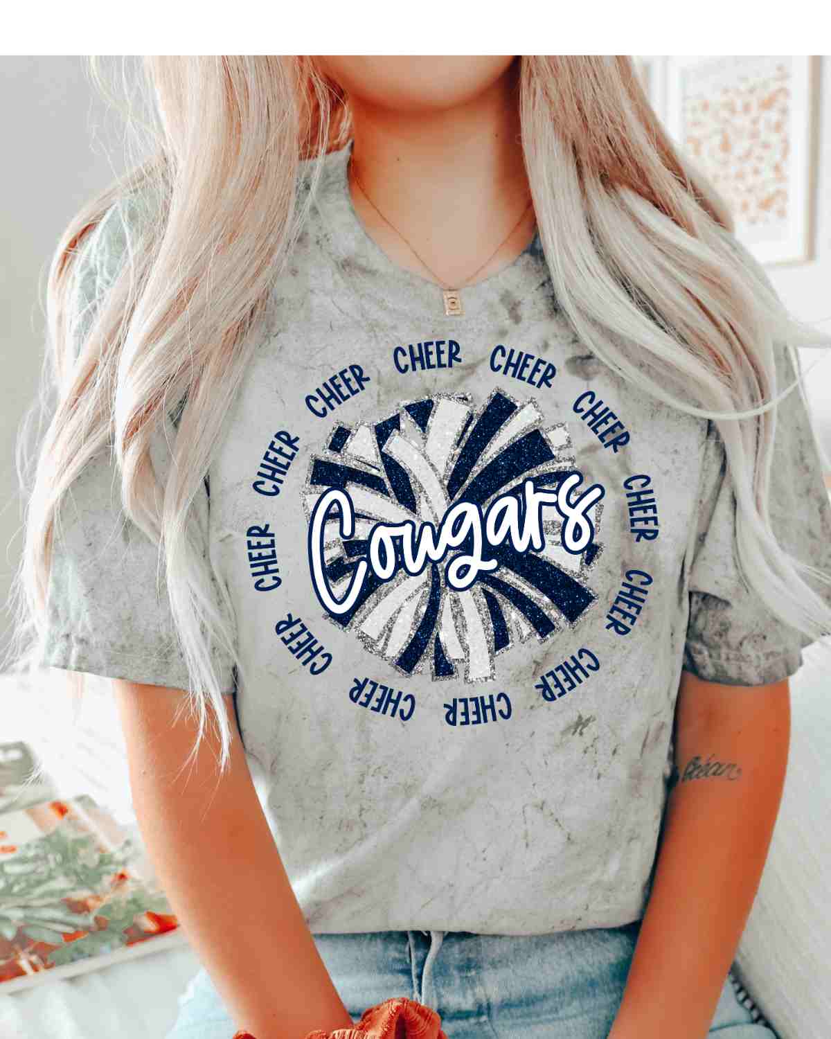 Looking for a bold and eye-catching design for your t-shirt or team uniforms? Look no further than the Cougars Cheer DTF Transfer from Rustic Grace Heat Transfer Company!