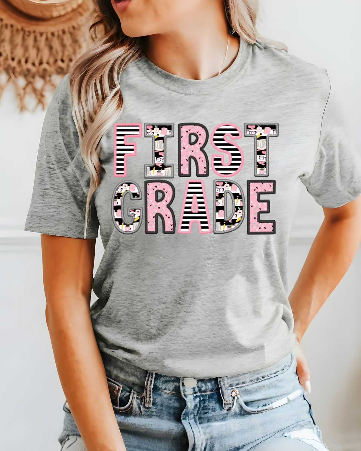 Custom Grade Pink Black Faux Embroidery DTF Transfer