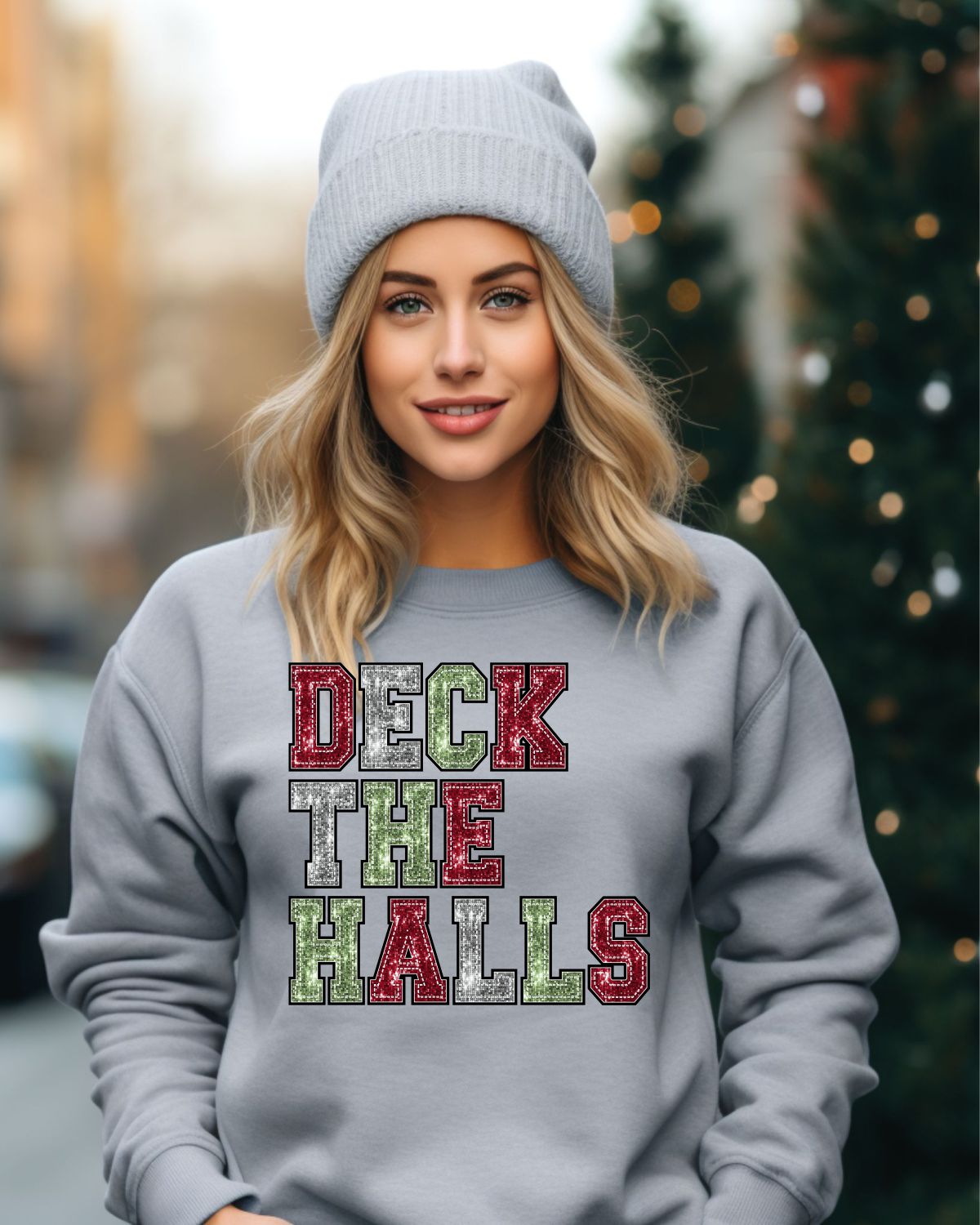 Deck the Halls Sequin Faux Letters DTF Transfer