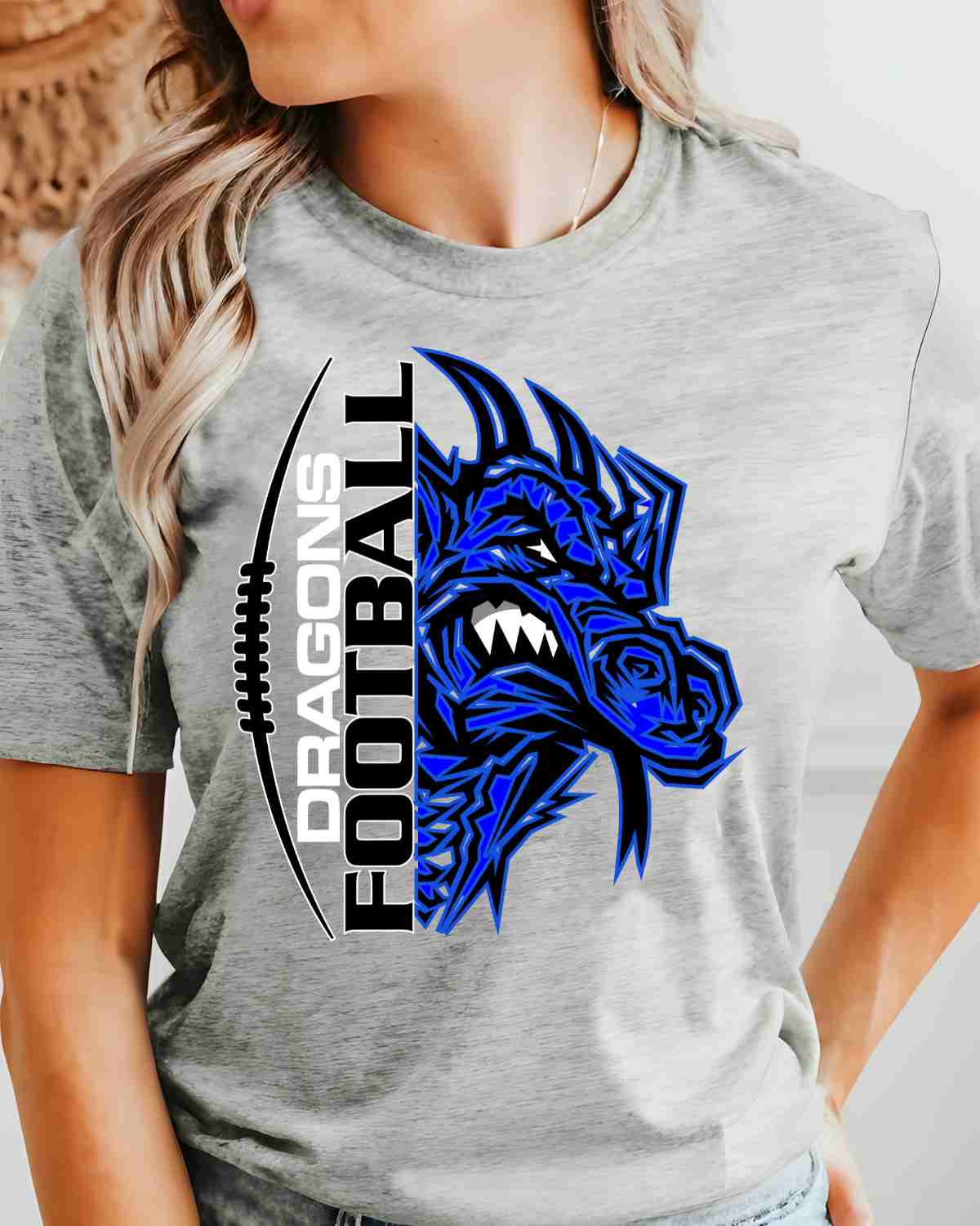 Gear up for game day with our Dragons Football Split DTF Transfer. This high-quality heat transfer design is perfect for showing off your spirit and support for your favorite team. Our direct to film transfer is made of durable material that ensures long-lasting wear and tear. The Dragons Football Split DTF Transfer is easy to apply to any t-shirt with a heat press transfer. Heat press transfers are perfect for those who are looking for a quick and cost-effective way to customize their clothing. Our transfer design is full color and will make your t-shirt stand out from the crowd. This Dragons Football Split DTF Transfer is not only great for t-shirts, but can also be applied to jackets, hats, bags and other accessories.
