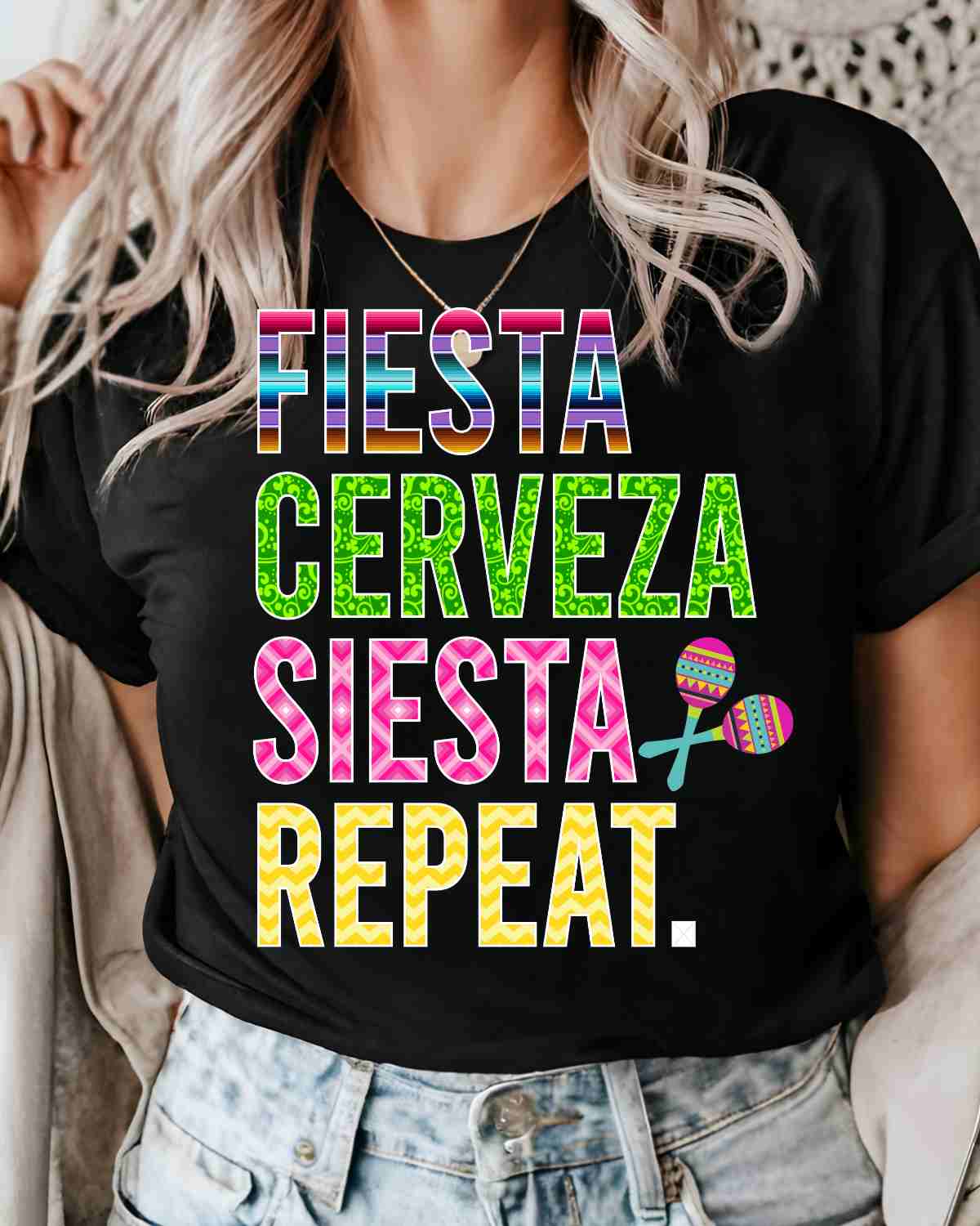 Fiesta Cerveza Siesta Repeat DTF Transfer